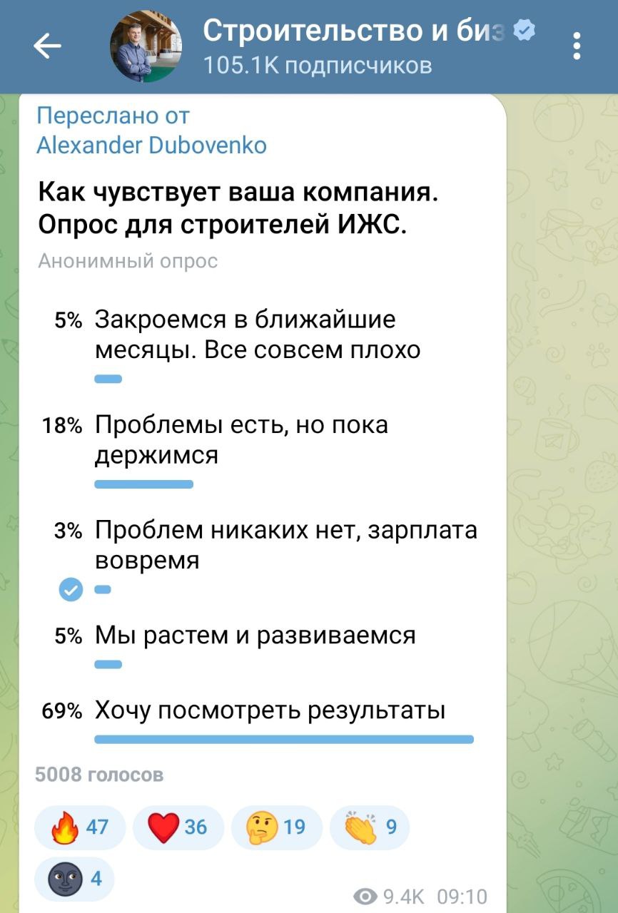 Сегодня в канале Гуд Вуд Александр Дубовенко выложил опрос для строителей ИЖС