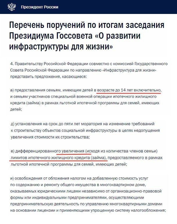 В перечне поручений Президента от 15 апреля